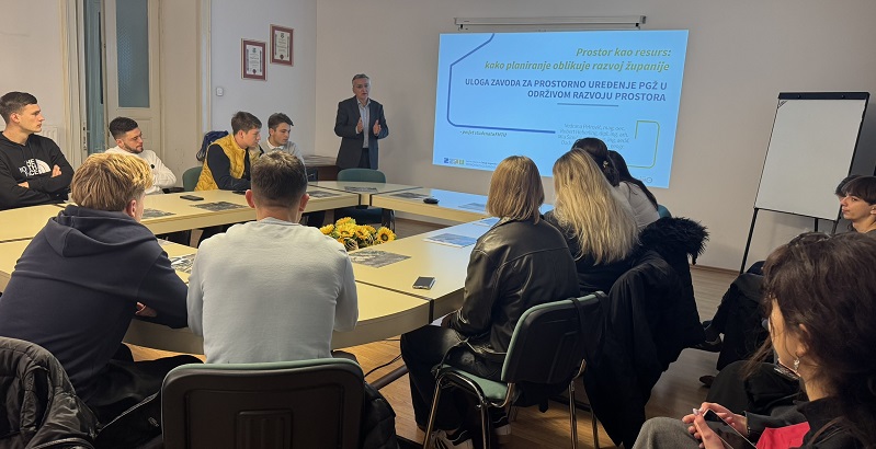 Ravnatelj Zavoda, Adam Butigan, pozdravio je prisutne studente, nakon čega su predstavnici Zavoda — Vedrana Petrović, Robert Heberling, Mia Šimičić i Dado Jakupović — kroz stručno predavanje objasnili ulogu, svrhu i važnost prostornog planiranja i urbanizma u praksi.